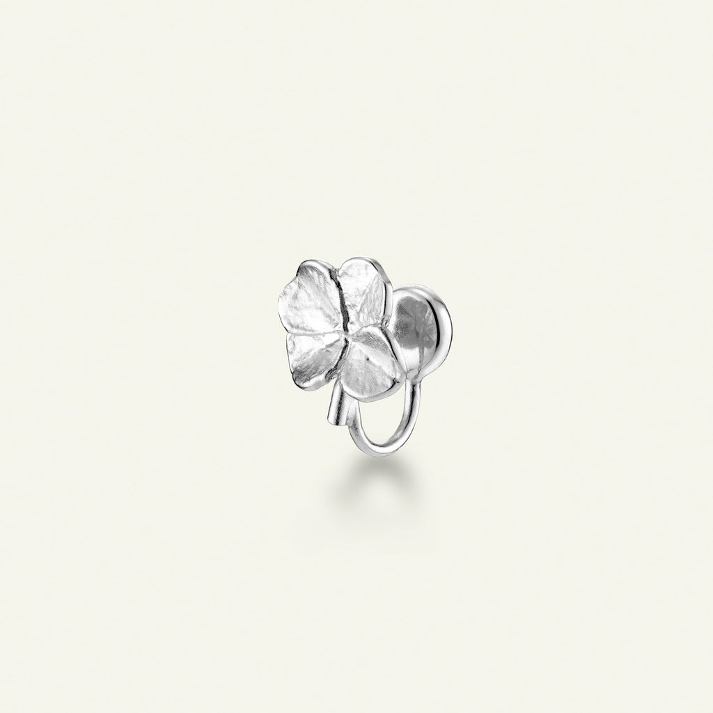 Flora Danicas firkløver ear cuff er fremstillet af 100% genanvendt sterlingsølv og belagt med rhodium for den fineste glans.
