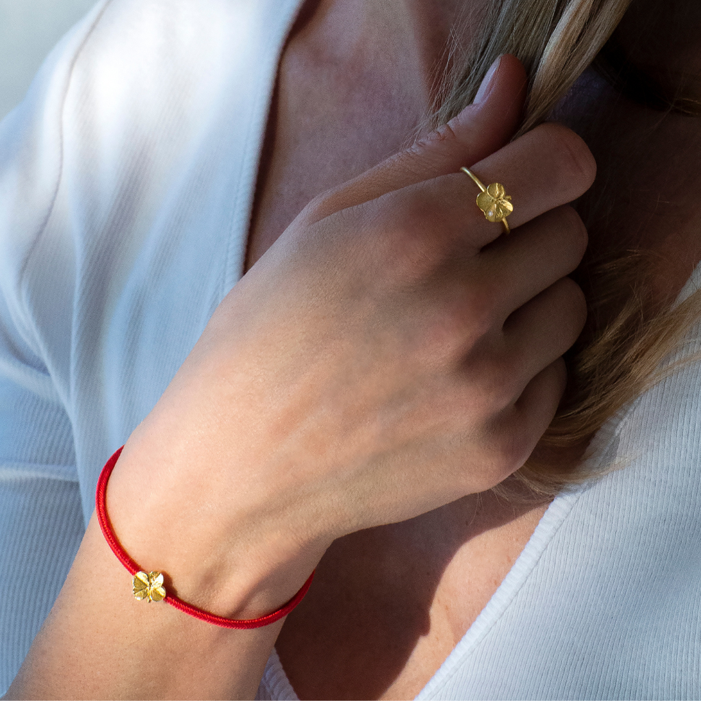I armbåndet sidder en firkløver, plukket i Danmark i 1950erne. Hvert blad i firkløveren repræsenterer dyrebare værdier og smykket er fuld af symbolik. Det første blad symboliserer tro, det andet står for håb, det tredje for kærlighed, og det fjerde blad bringer held. Kun en ud af 10.000 kløvere er en firkløver.