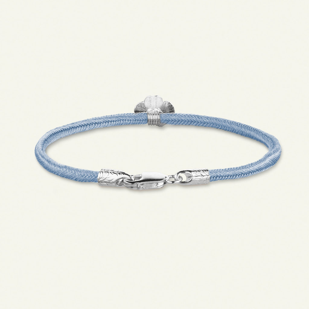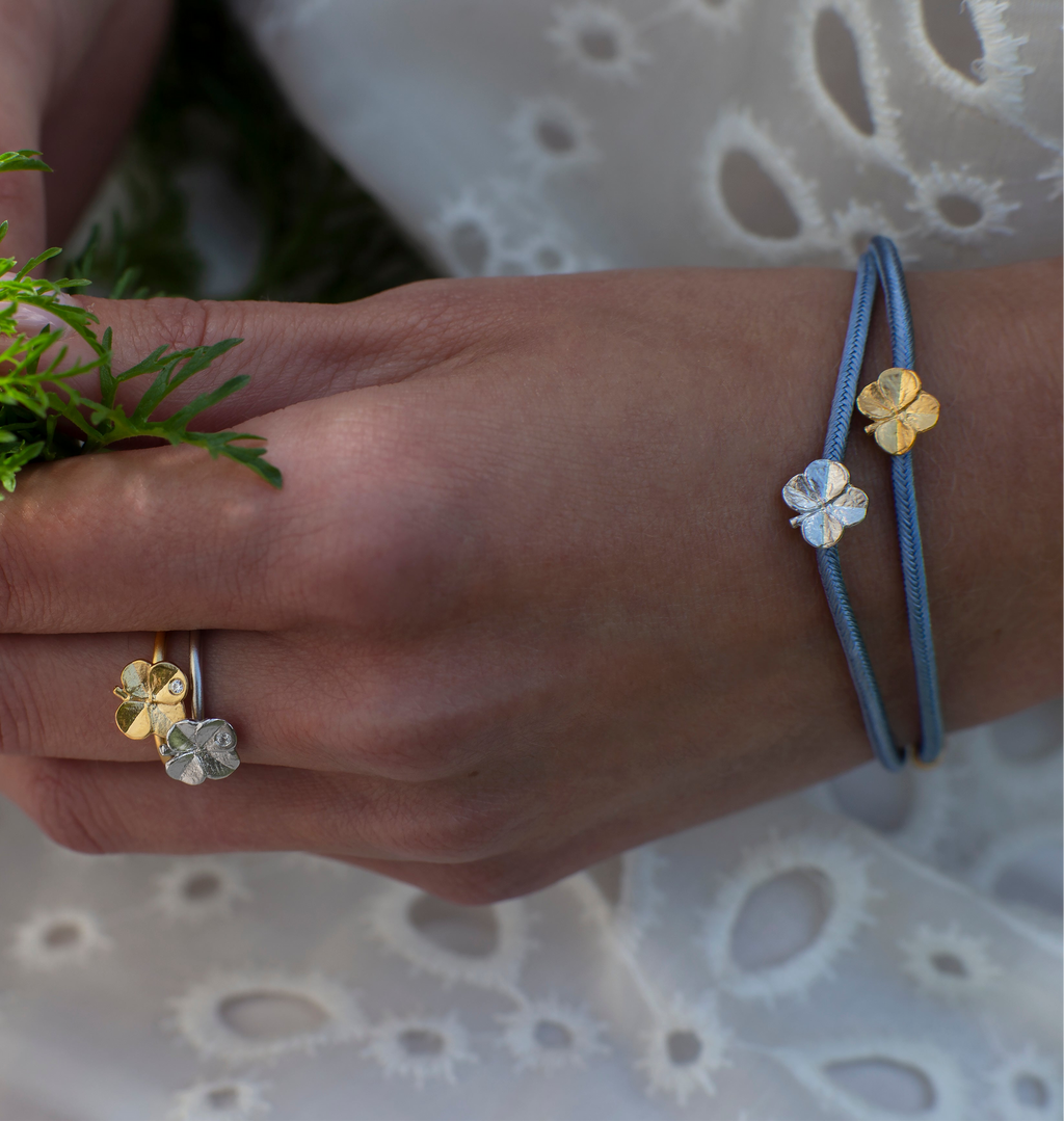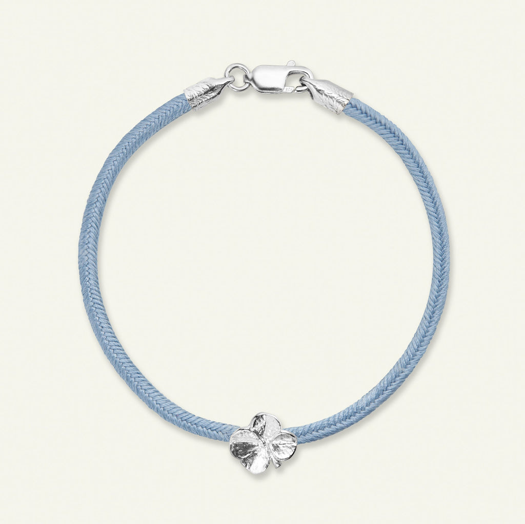 Firkløver silkearmbånd blåt, sølv