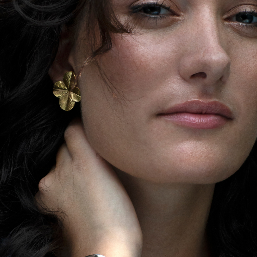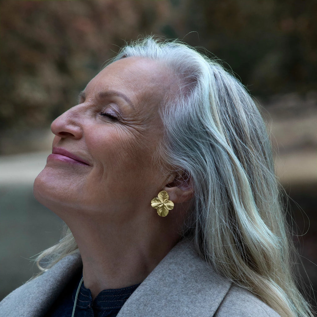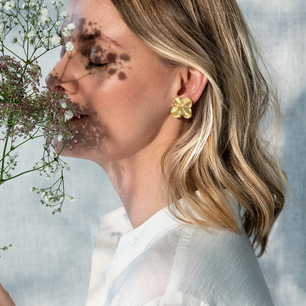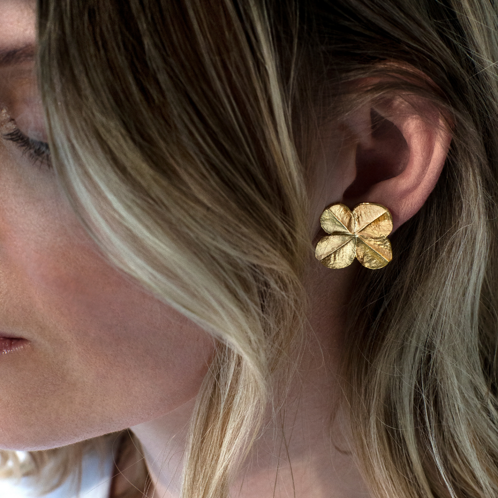 Den ægte firkløver der blev brugt til disse øreclips blev plukket i Danmark i 1950erne.