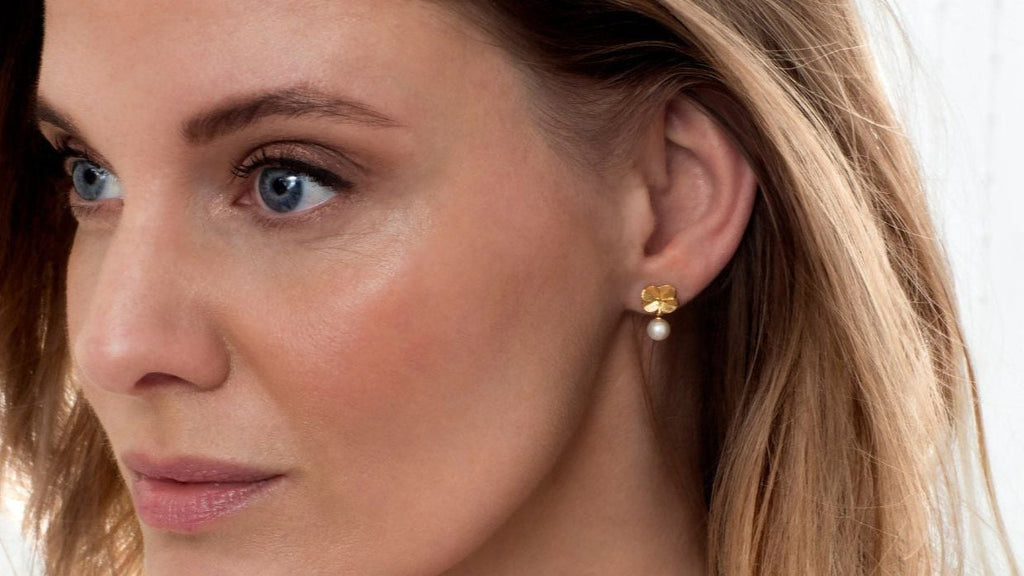 Nyhed: Firkløver ørestikkere med perler – naturens skønhed i perfekt harmoni.