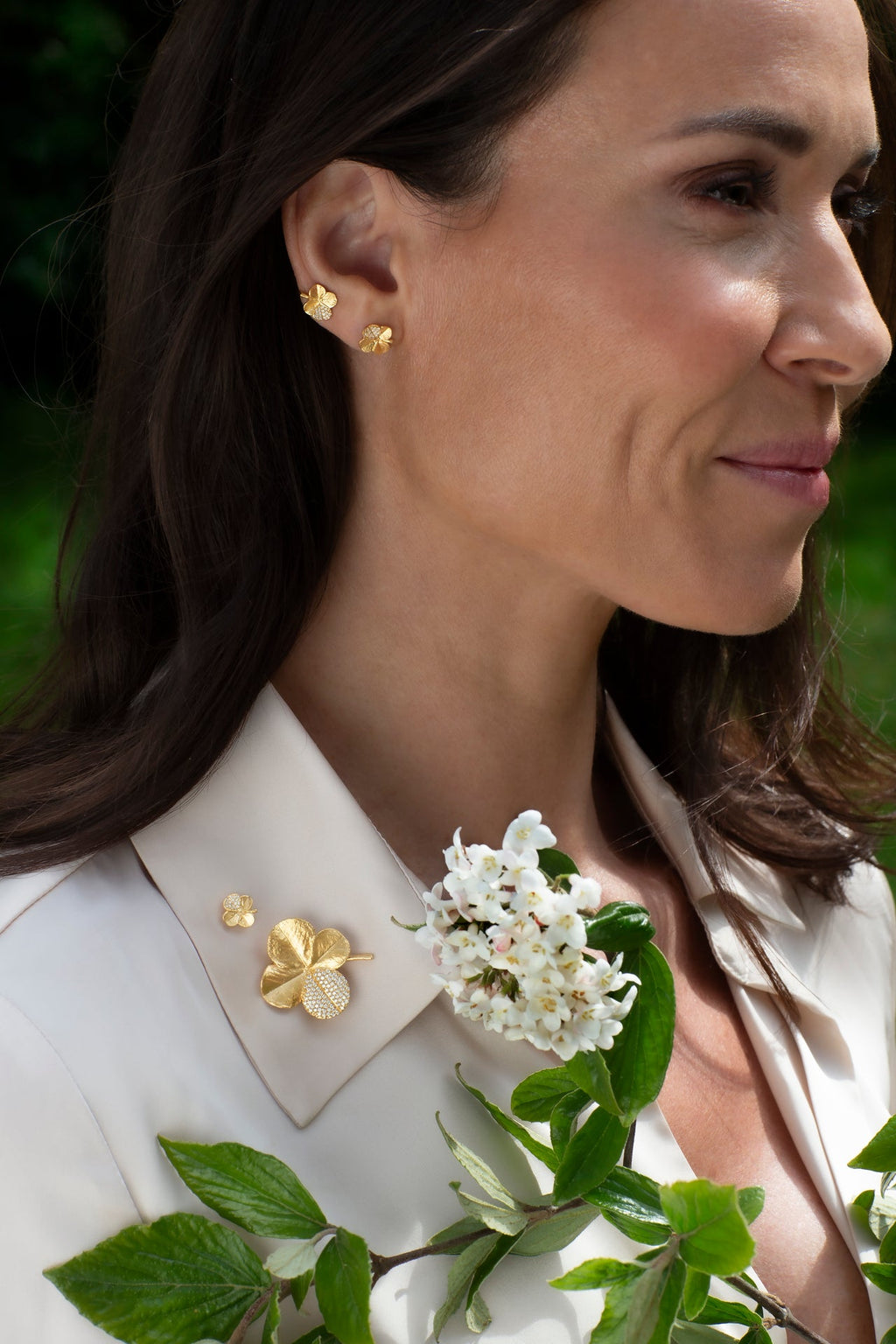 Pin brochen er baseret på en ægte firkløver, plukket i Danmark i 1950'erne. Designet er skabt med naturens egen hånd, og den originale struktur og de fine detaljer i bladene er nænsomt bevaret og fremhævet i det håndlavede design.