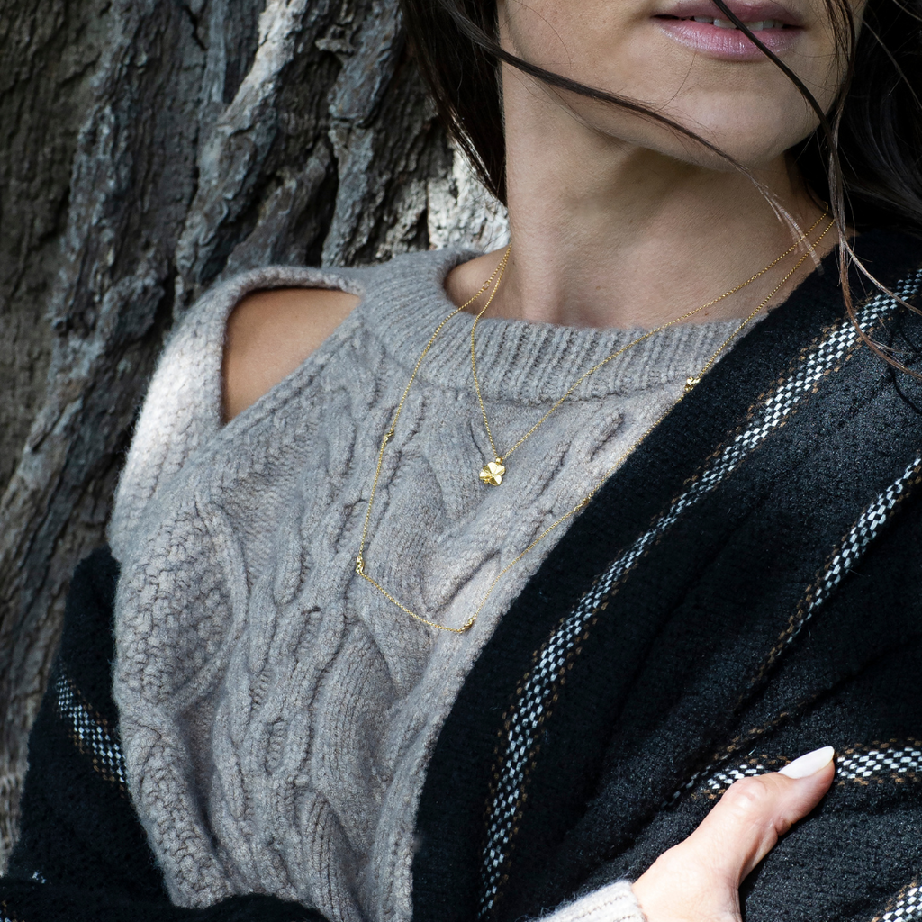 Firkløver halskæde med vedhæng forgyldt med justerbar kæde