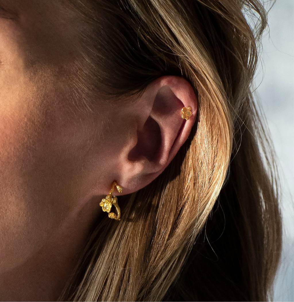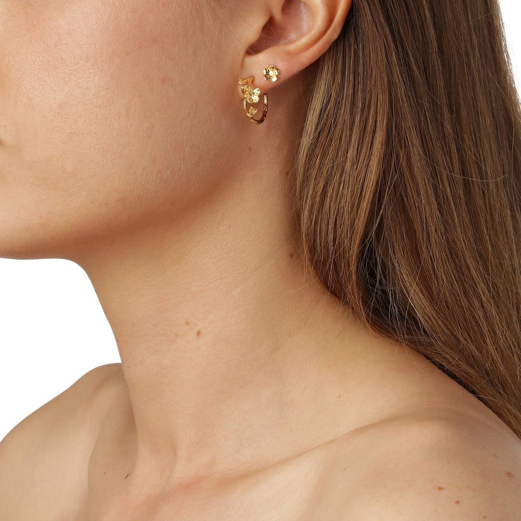 Forglemmigej hoop øreringe fra Flora Danicas 70-års jubilæums kollektion. Øreringene har form som en bøjet stilk med en fin lille forglemmigej blomst på.