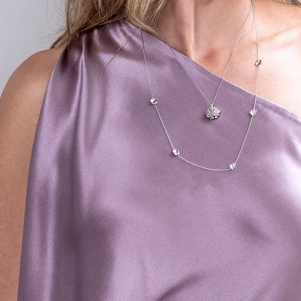 Smykket er udført i 925 sterlingsølv belagt med rhodium.