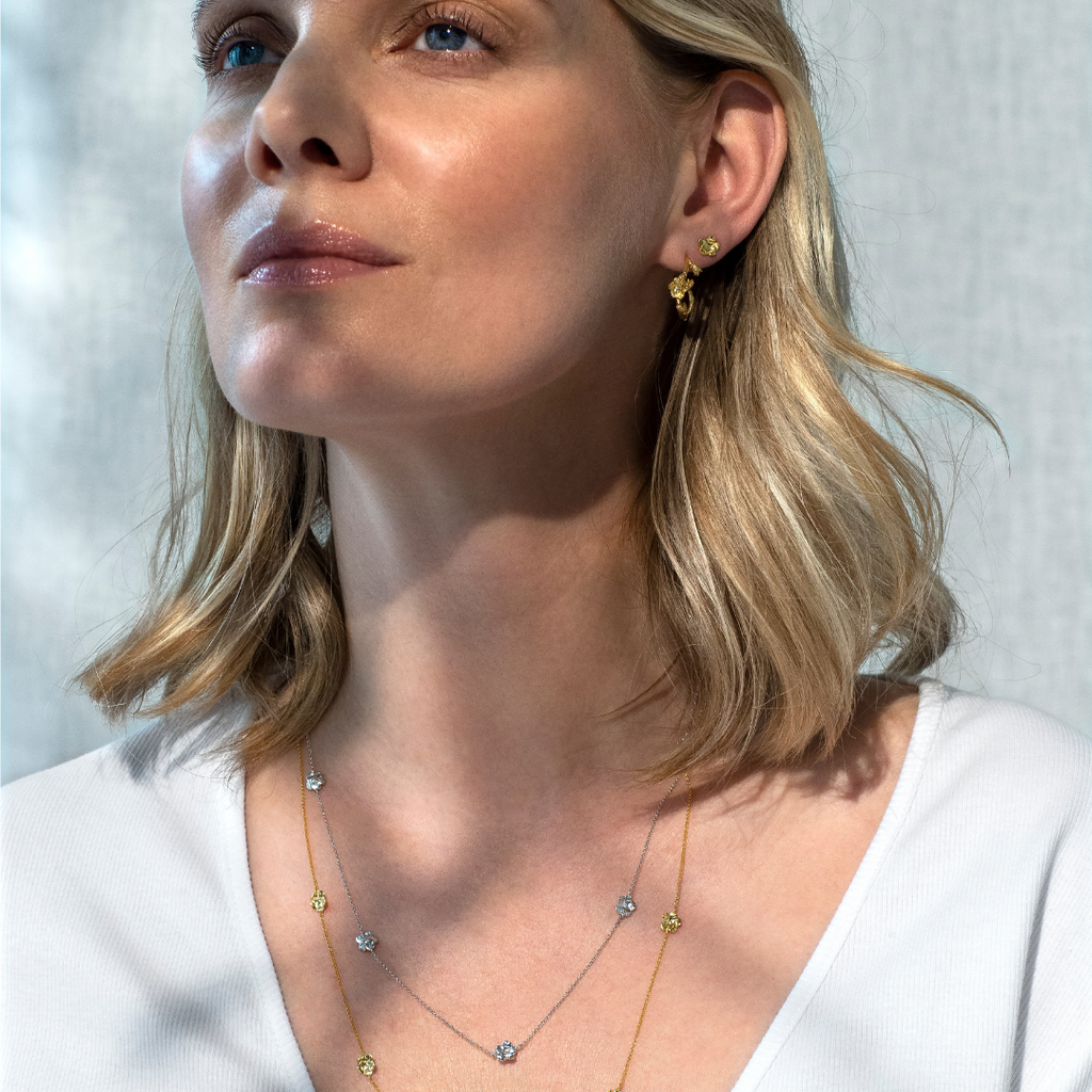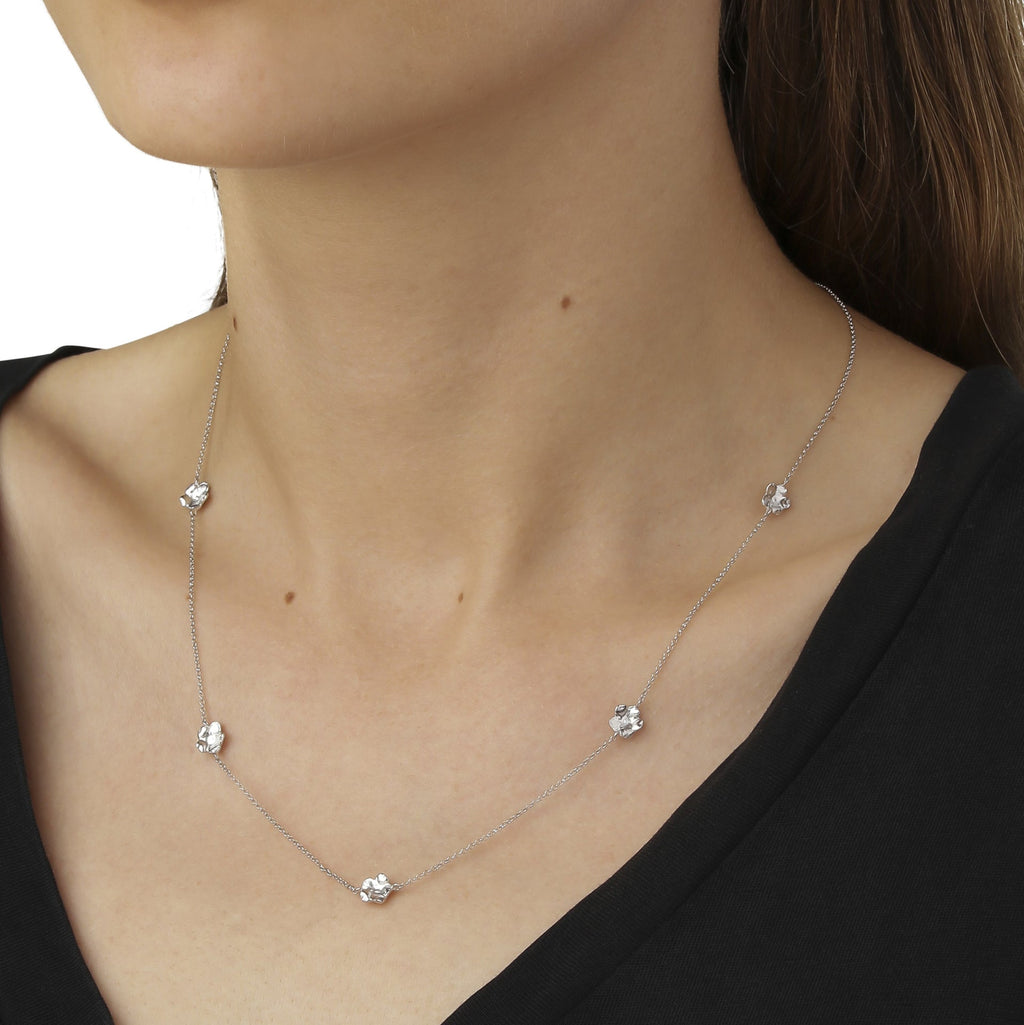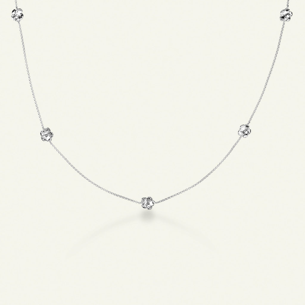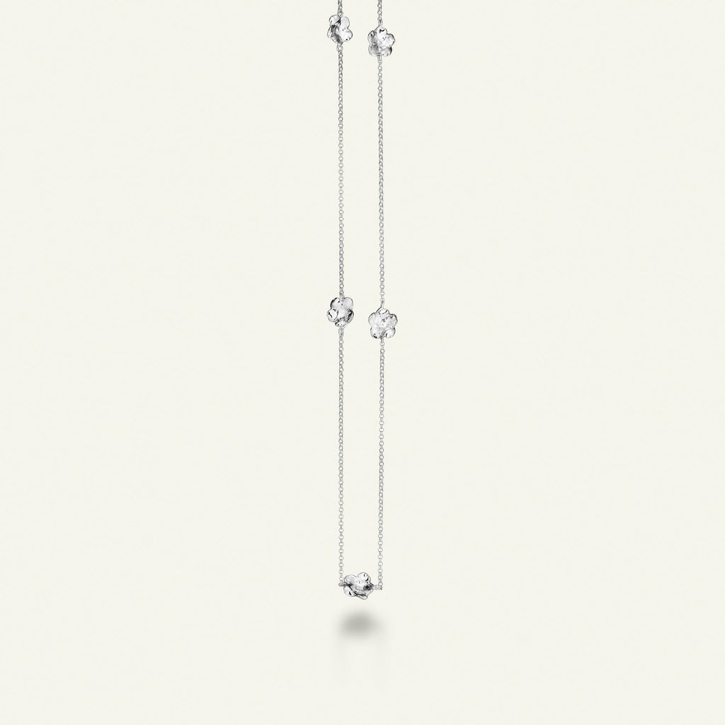 Forglemmigej er blandt de bedst sælgende kollektioner siden 1952 og symboliserer troskab, kærlighed og venskab. Smykket har fem små forglemmigej blomster på en fin kæde i justerbar længde (50, 55, 60 cm).
