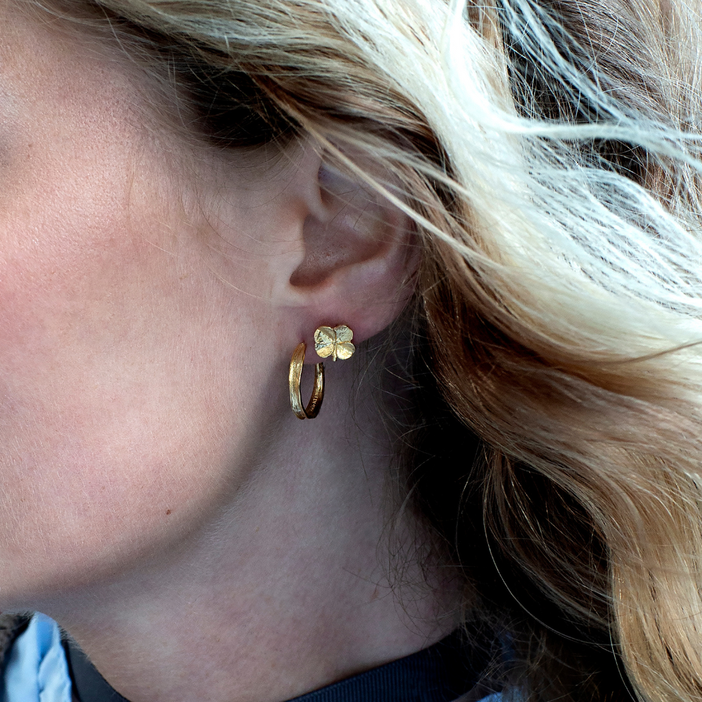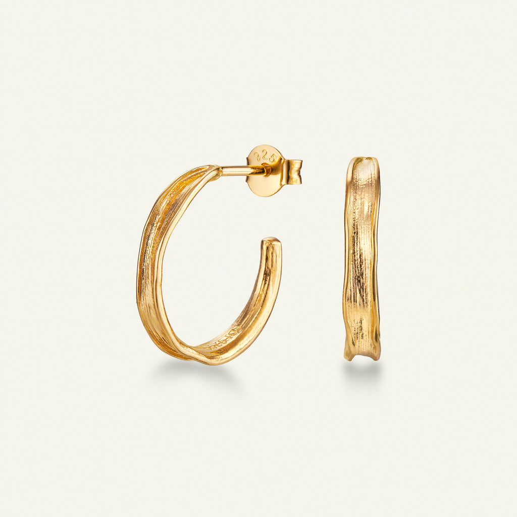 Øreringene fås i enten 22 karat forgyldt sterlingsølv eller sterlingsølv med en belægning af rhodium der sikrer den fineste glans og holdbarhed.