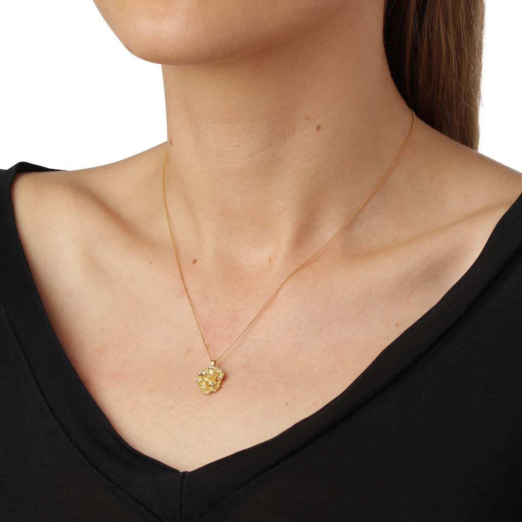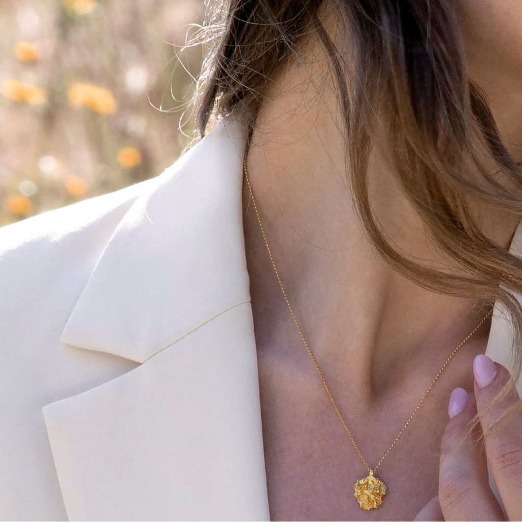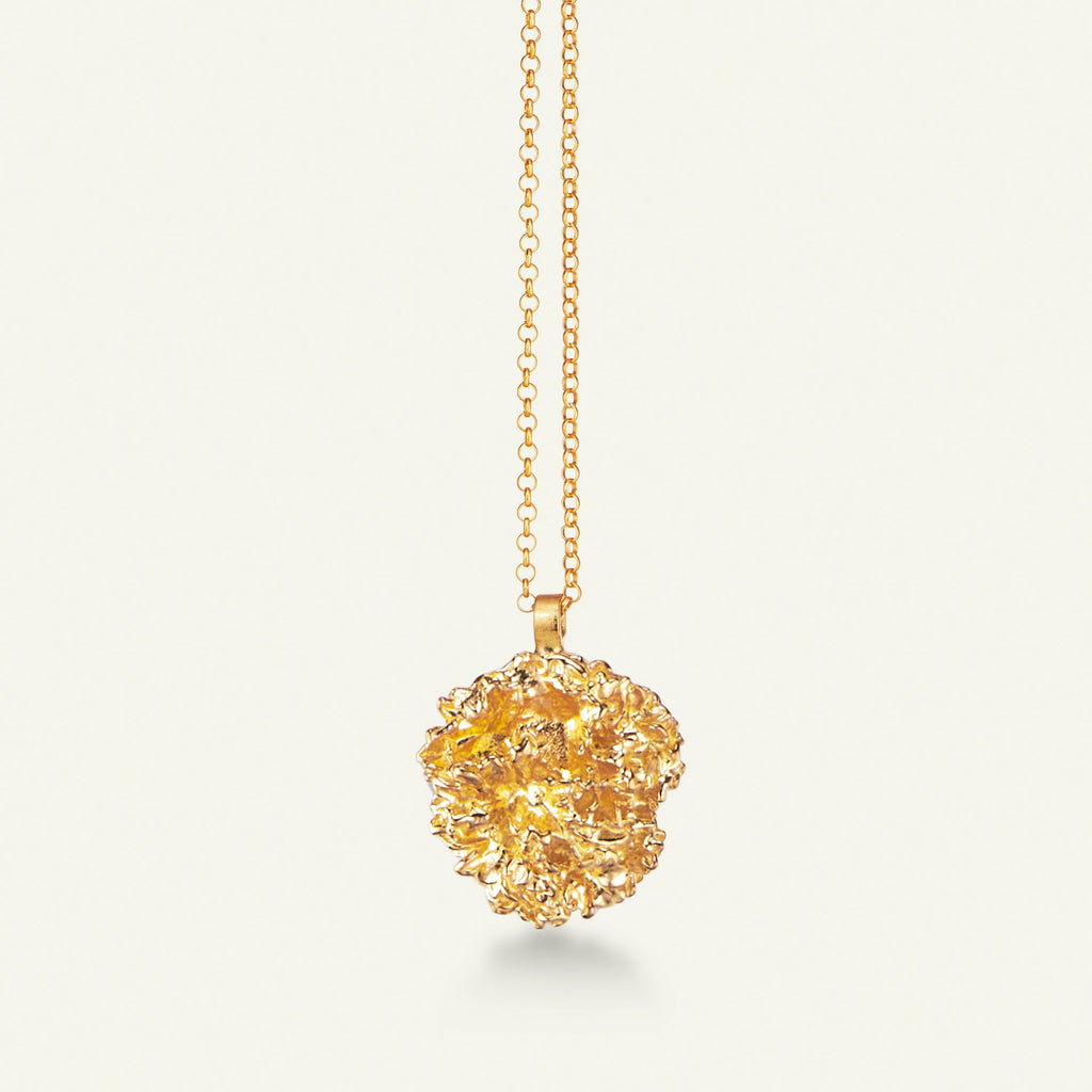Vedhæng og kæde er udført i sterlingsølv med en 22 karat forgyldning.